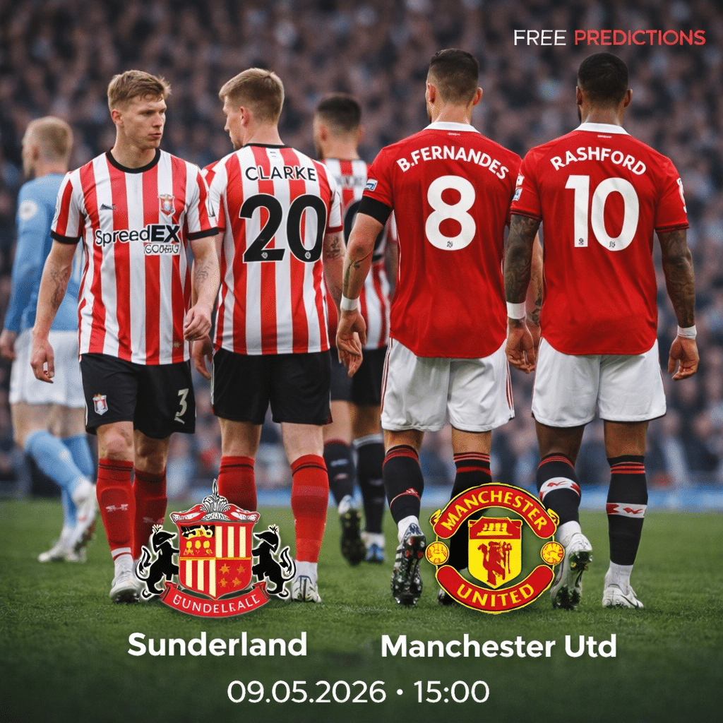 The meeting between Sunderland and Manchester United is one of the more intriguing fixtures of the Premier League round. Scheduled for 9 May 2026 at the Stadium of Light, this clash brings together a newly competitive Sunderland side and a Manchester United team still pushing hard near the top end of the table. With the season entering its decisive stage, both clubs have clear reasons to chase all three points.